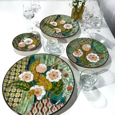 В среднем роспись одной тарелочки занимает от 3 недель, в зависимости от сложности рисунка.
