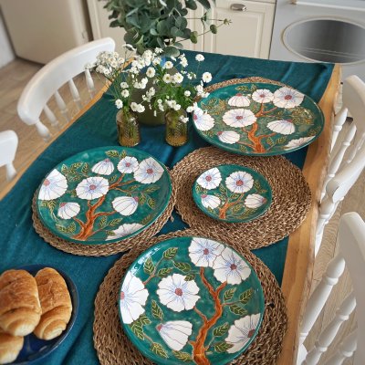 В среднем роспись одной тарелочки занимает от 3 недель, в зависимости от сложности рисунка.