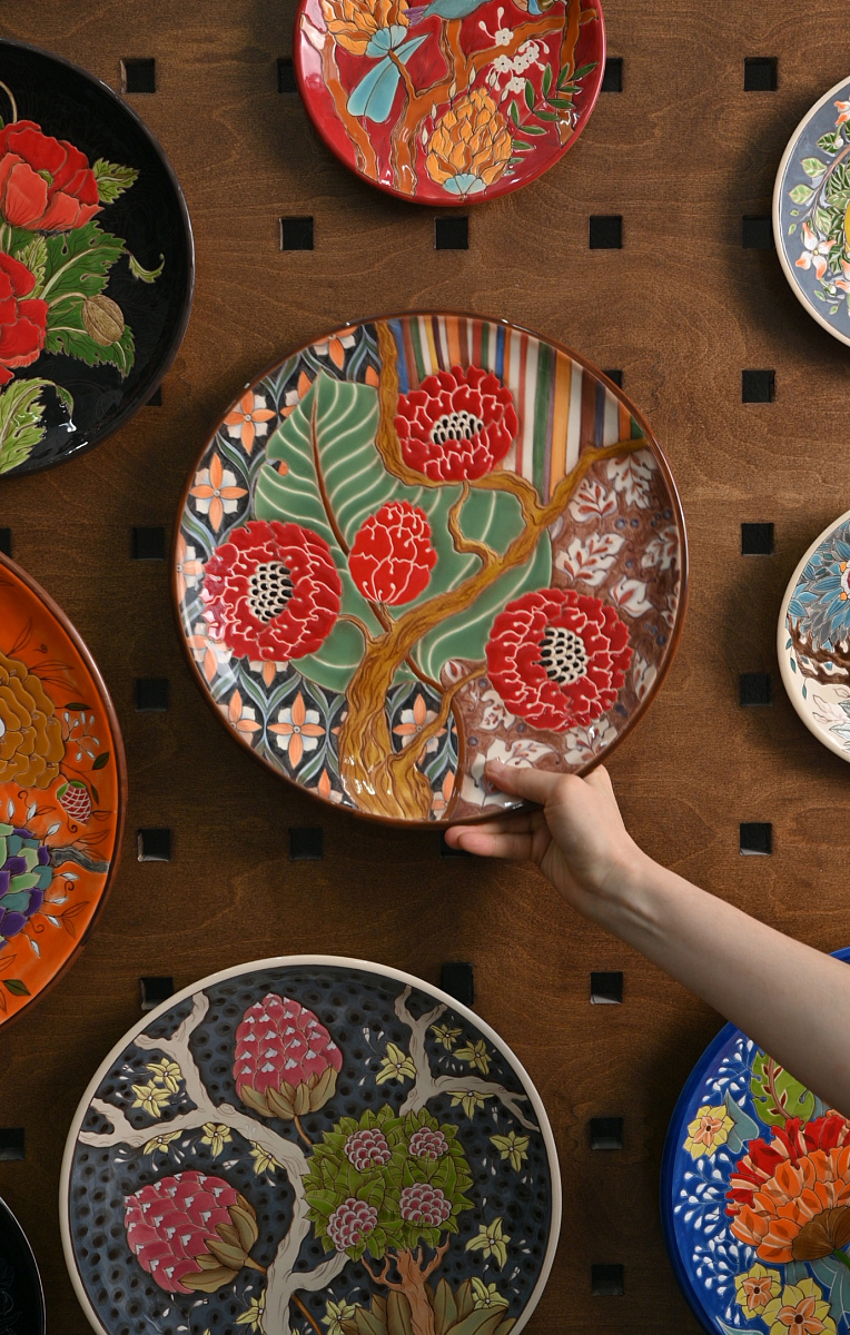 Мы используем несколько проверенных способов крепления, каждый из которых надёжен и рассчитан на безопасное размещение изделия на стене. Ранее тарелки комплектовались креплением на леске, но по отзывам покупателей мы добавили вариант со стальным тросиком — более аккуратное и долговечное решение. Также тарелку можно установить на подставку и использовать как самостоятельный интерьерный объект. В видео показаны все три способа крепления и установки.
